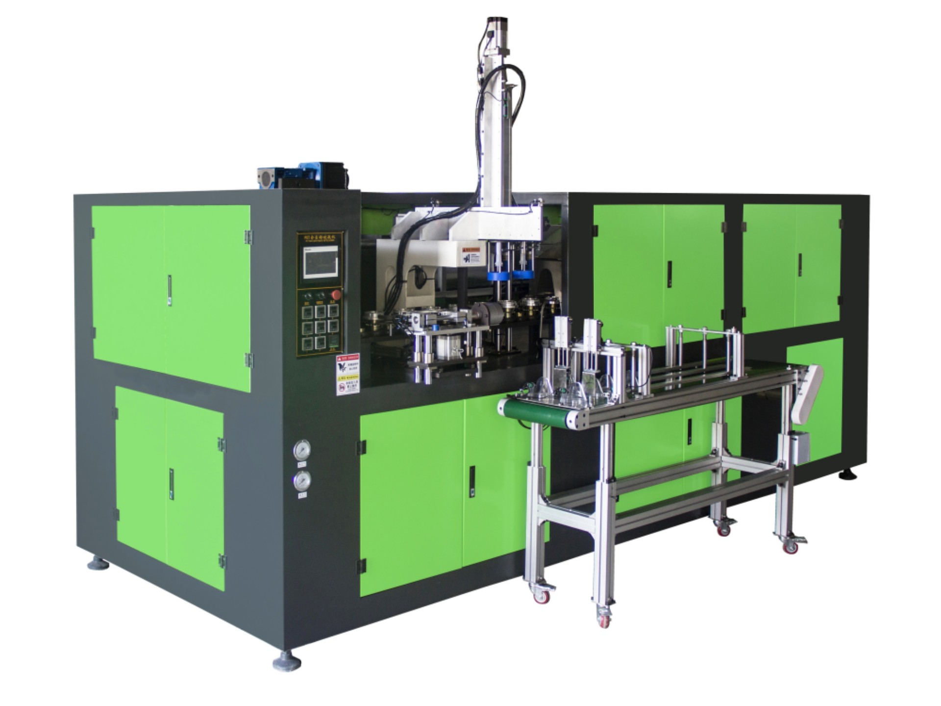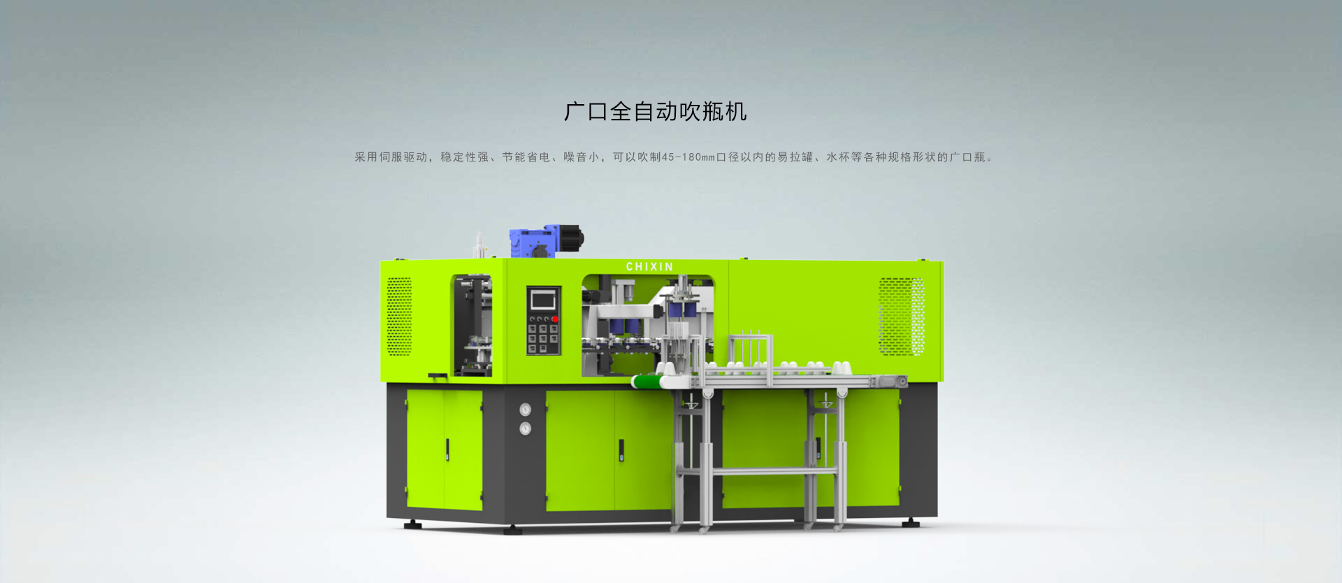 廣口一出二全自動吹瓶機主要用于PC、PS、PET廣口易拉罐吹瓶生產(chǎn)